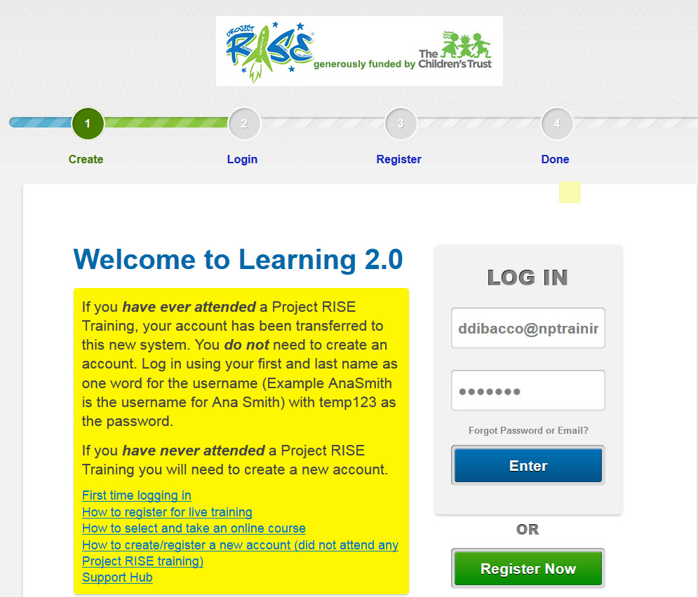 Below is the screen page when you first log into Project Rise: https://collabornation.net/login/projectrise