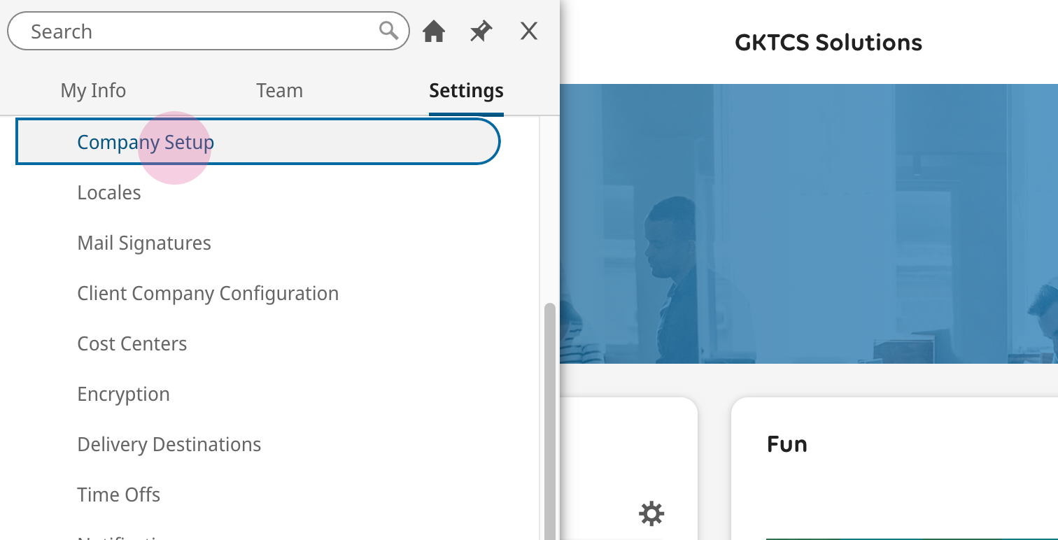 7. Navigate to Settings > Global Setup > Company Setup from the menu on the top left.