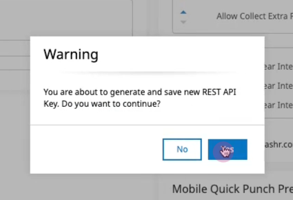 14. A prompt will appear. Click Yes to generate a new API Key.