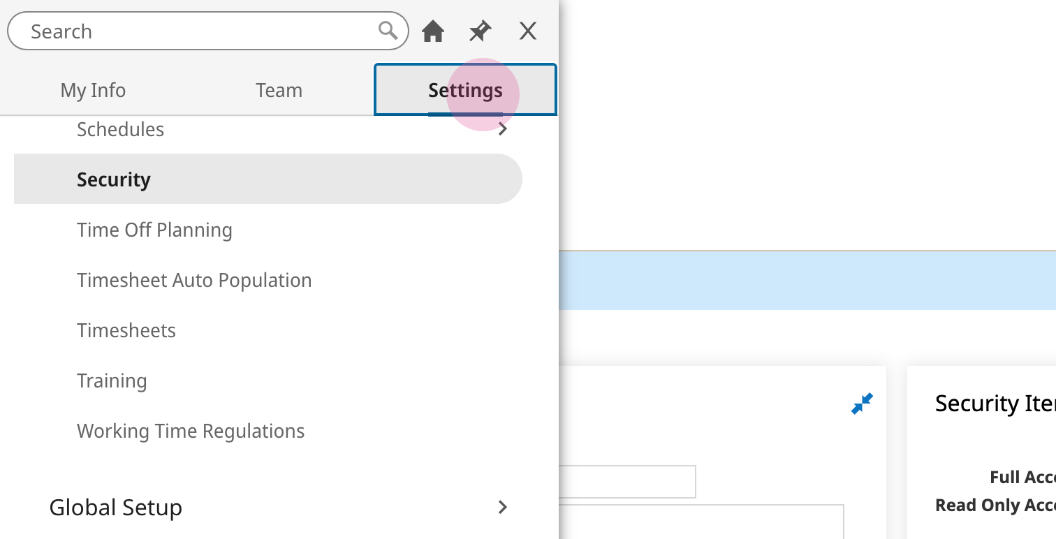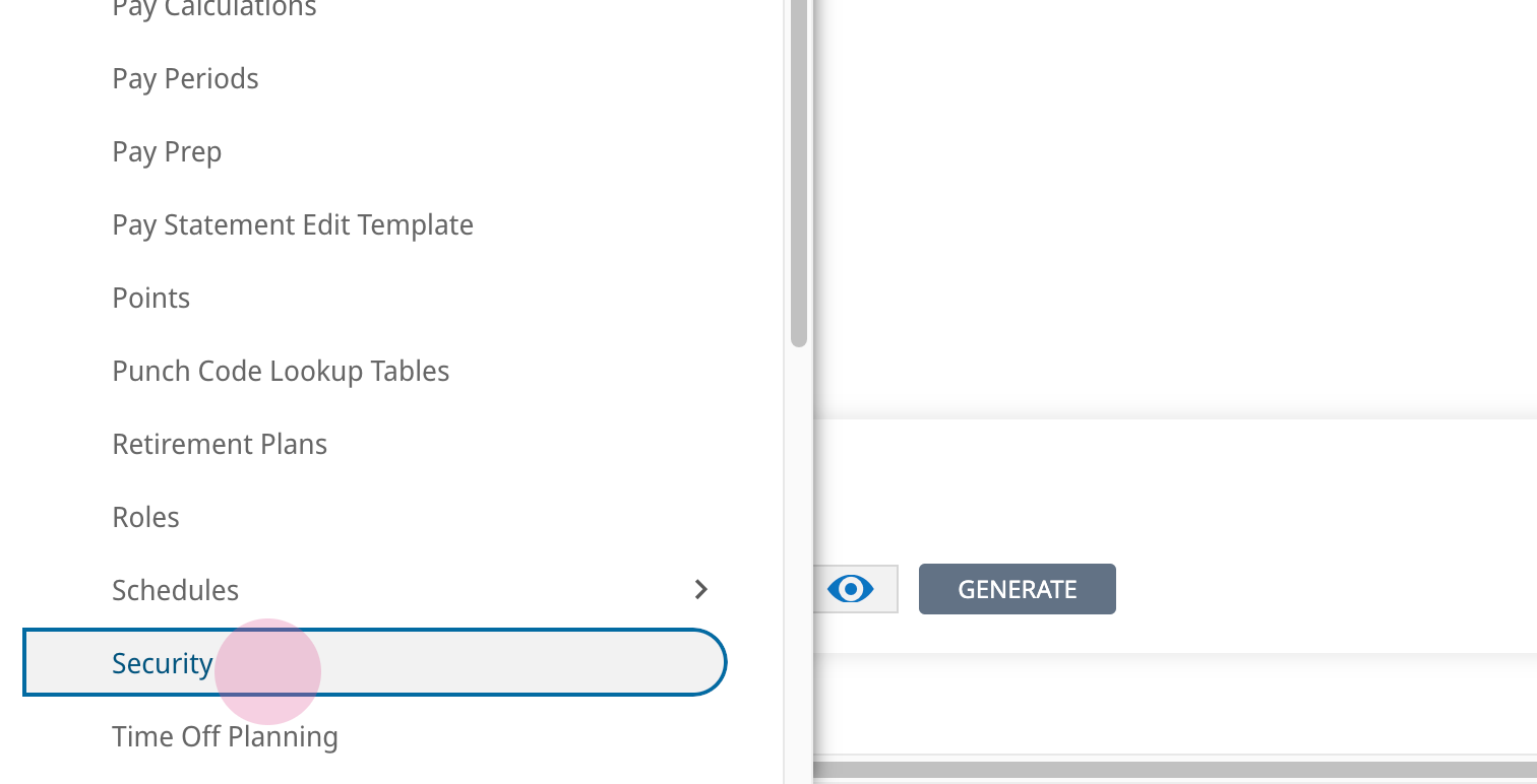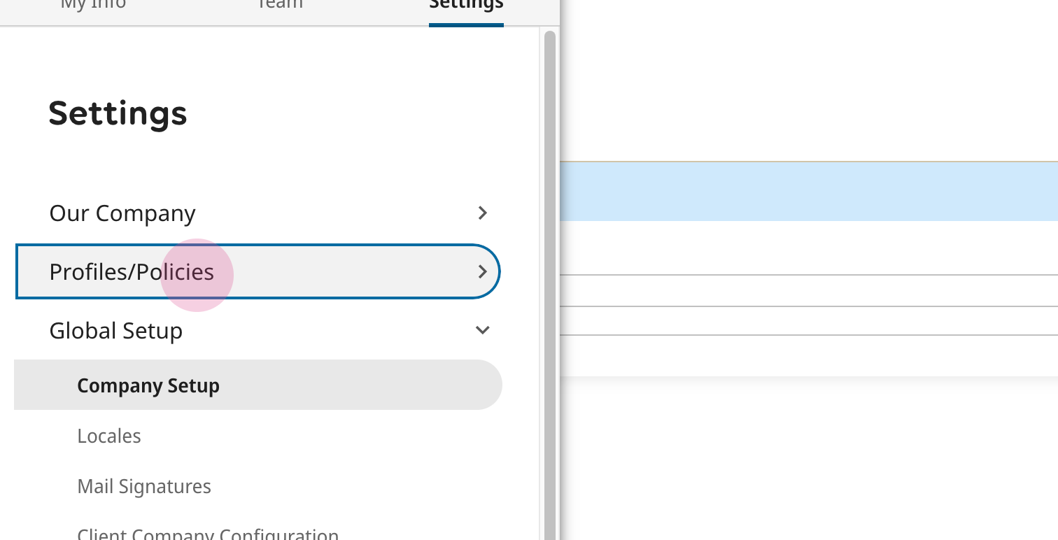 17. In your UKG Ready site, navigate to Settings > Profiles/Policies > Security.