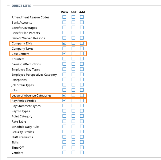 - Give View access to Pay Period Profile.
