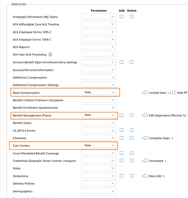 - Give View access to Base Compensation.