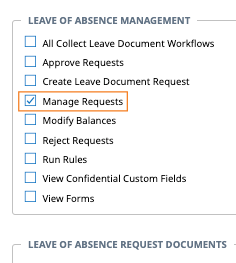 23. Under Leave of Absence Management, select Manage Requests.